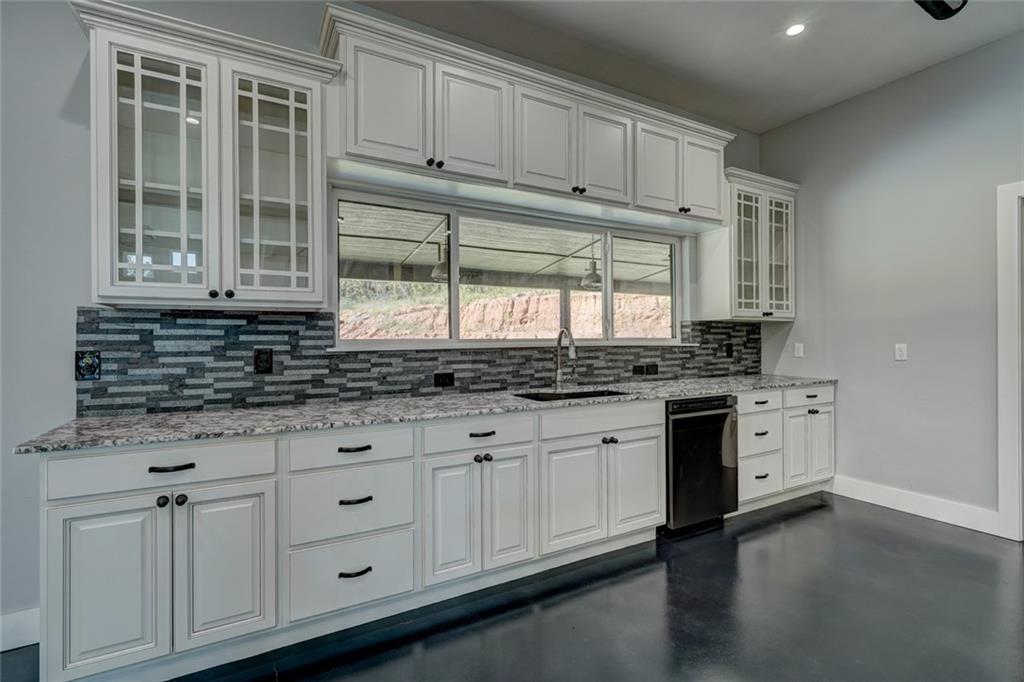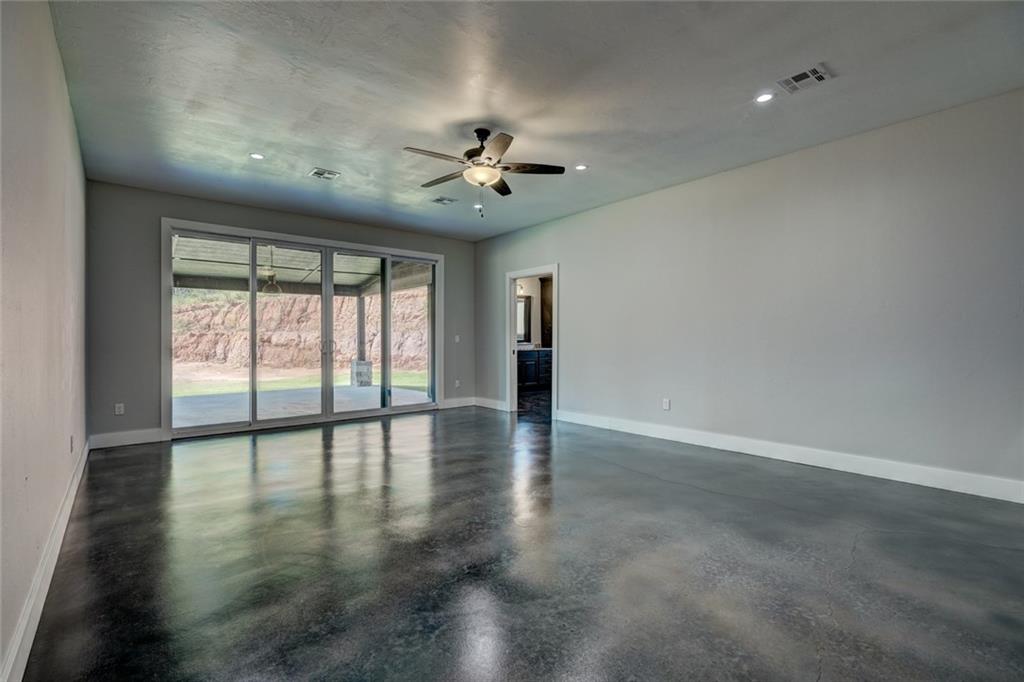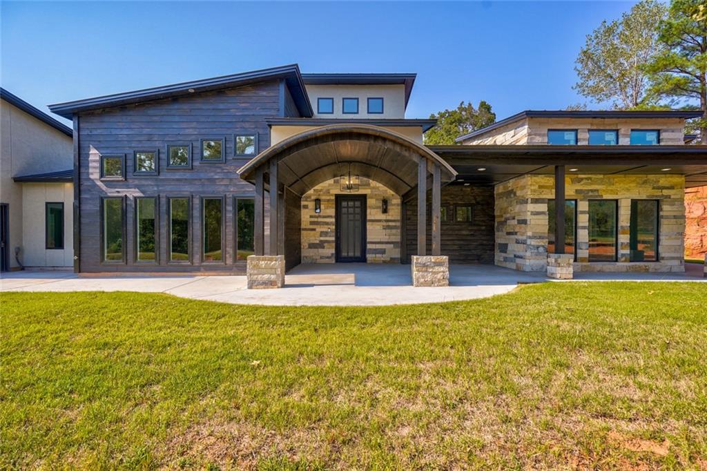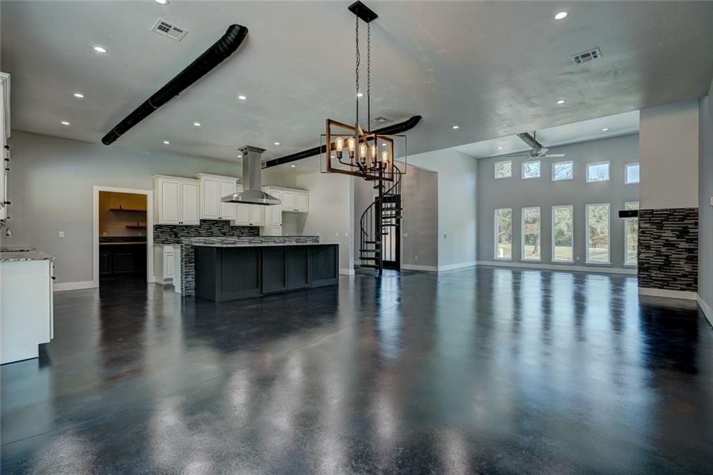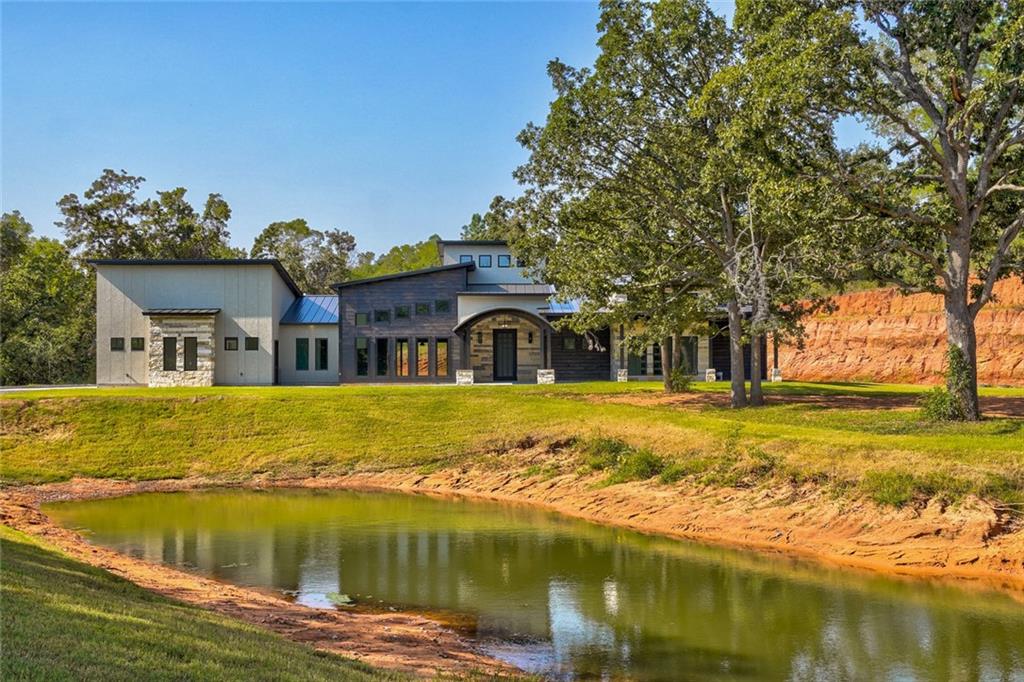 Country living meets contemporary style just minutes from Tinker and OKC. This brand new, three bedroom, two and a half bath home includes stunning amenities and design features. The front half of this 5.7 acre lot is beautifully sculpted with a gently meandering drive past a well-designed, scenic pond. Inside, you're greeted with cool comfort and industrial-inspired styling at every turn. From the black concrete floors connecting every corner of the open floor plan to the exposed ductwork at the height of the vaulted ceiling. The spacious kitchen includes a crazy amount of countertop space and cabinetry PLUS a huge pantry with butcher block counters and vegetable sink. Amazing touches abound, such as the ZLINE vent hood with built-in Bluetooth speaker in the kitchen to the Elfa modular closet organizers in every room. The crown jewel of this home is the massive, stone-accented covered porch stretching nearly the entire width of this amazing home. Book your exclusive tour today!